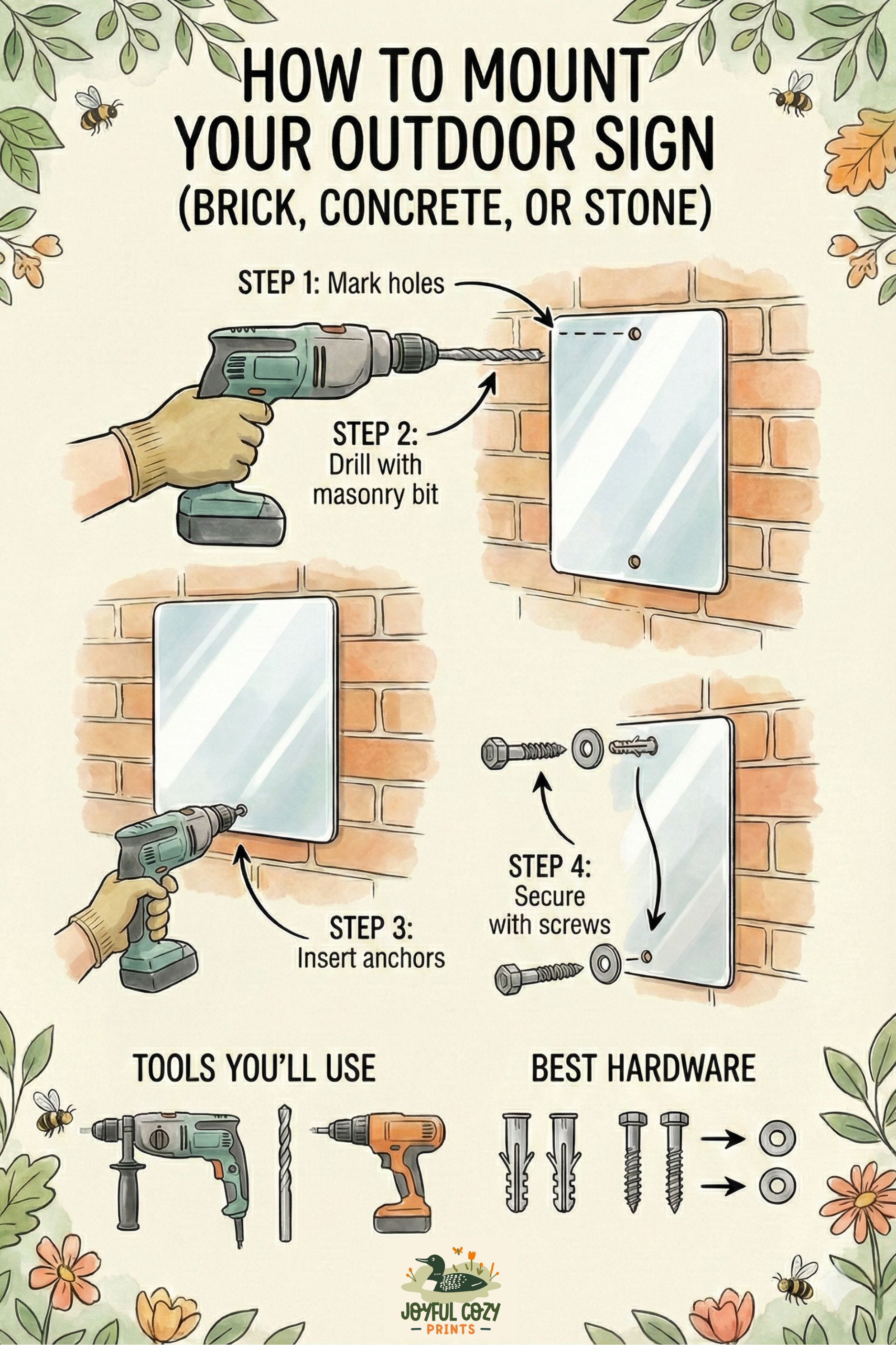 If you want everything in one place, a small outdoor sign hardware kit with stainless screws and washers makes this quick and tidy. I keep one linked below.